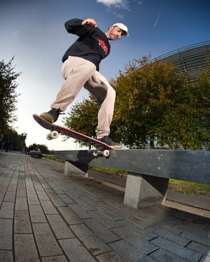 Nowhere encapsulated this confluence of tech and pop quite like Edinburgh’s Bristo Square, and few were as consistent or stylish as ‘Wee’ Joe Ward. Not only was Joe the square’s very own pint-sized Guy Mariano but he also had the foresight to commemorate the iconic street spot, the original ledges of which would be lost to history in 2015.